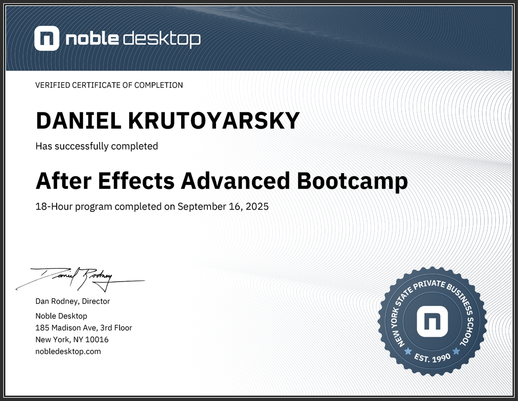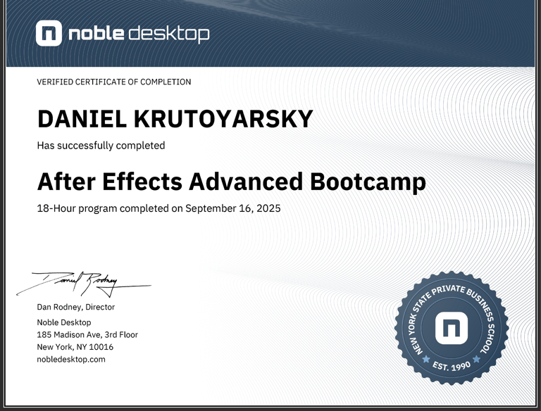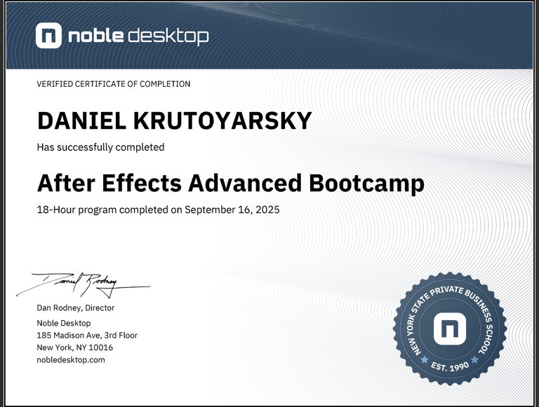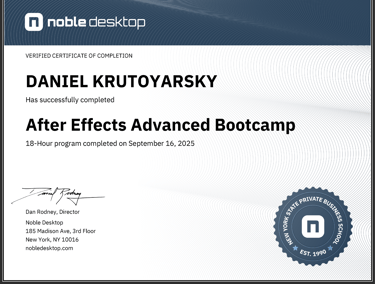 Expanded technical expertise in After Effects through advanced animation techniques, including 3D layers, expressions, and custom shape animations. Produced polished motion graphics suitable for professional and portfolio use.